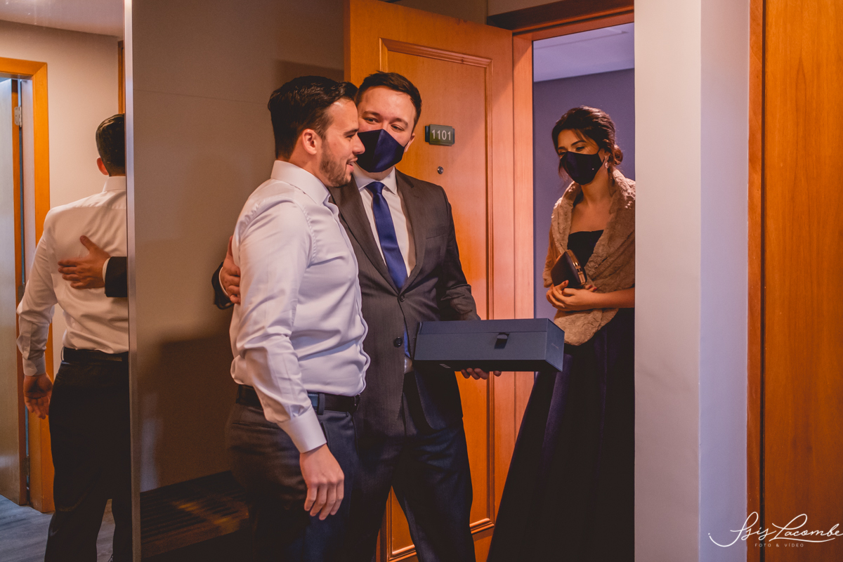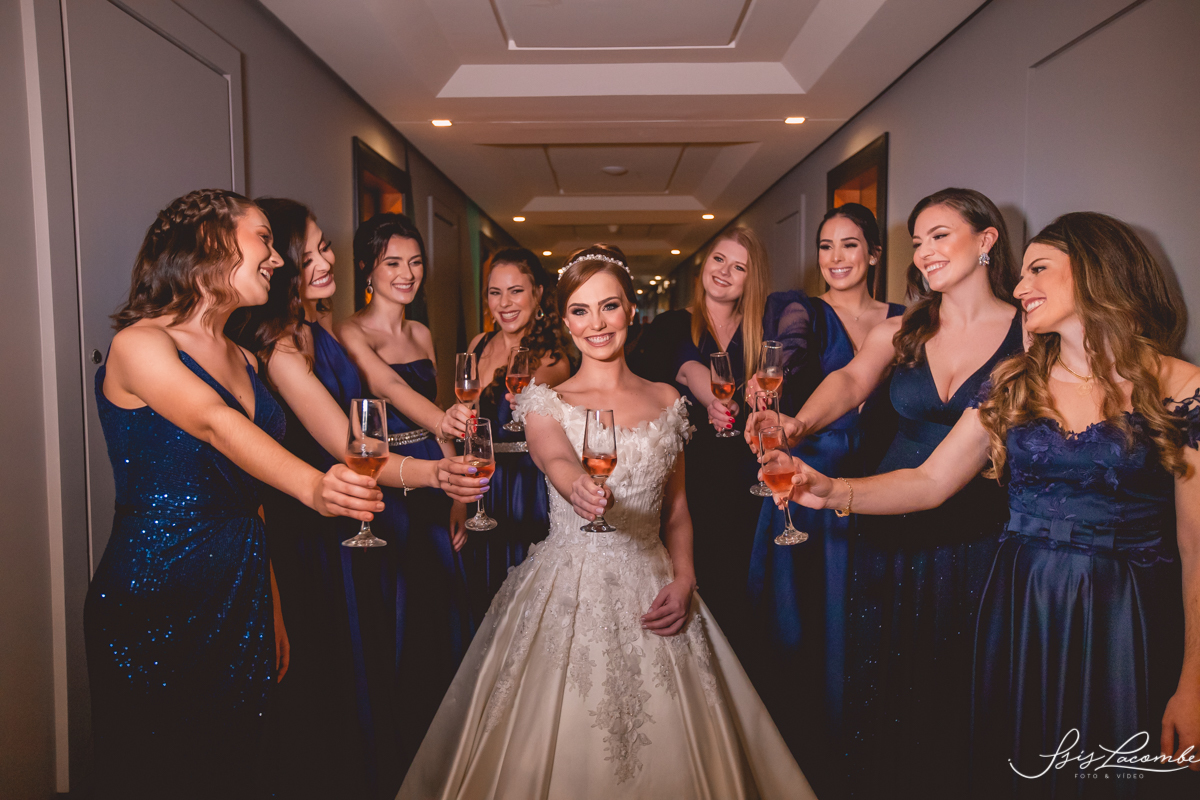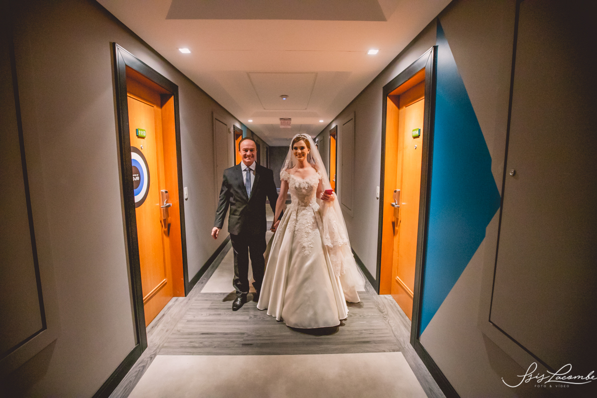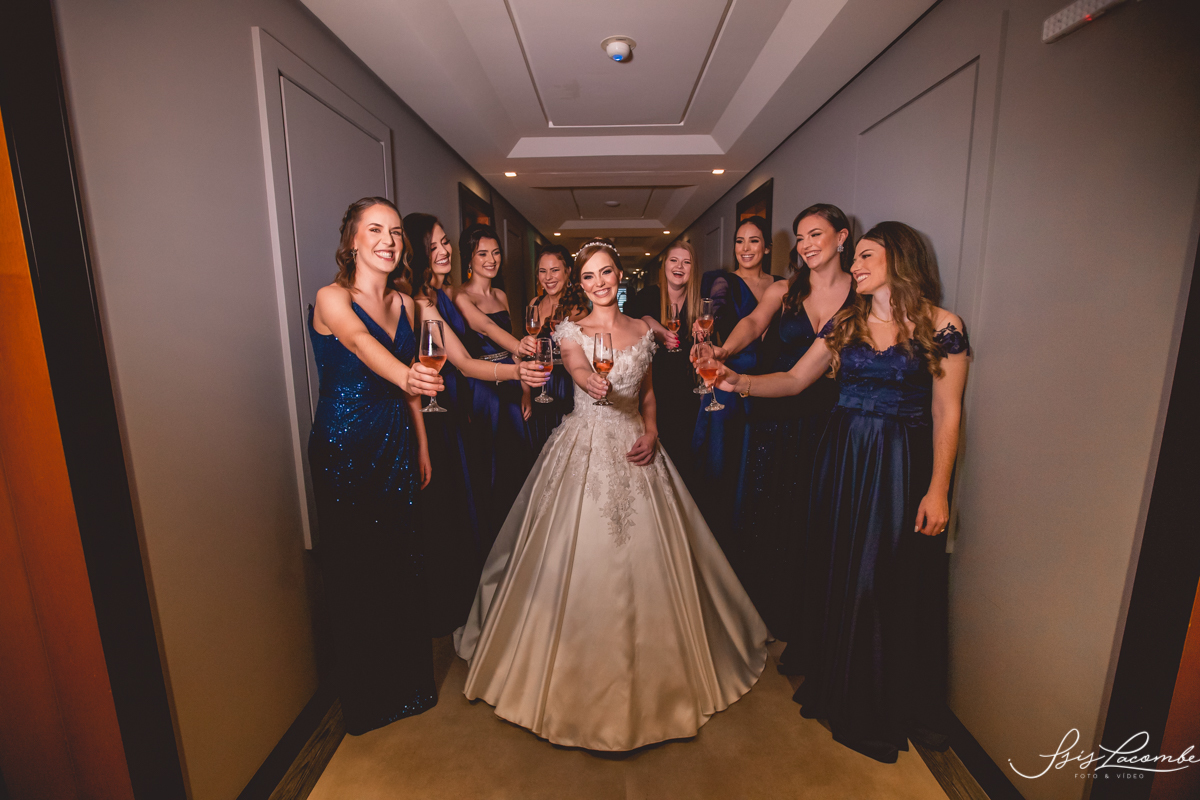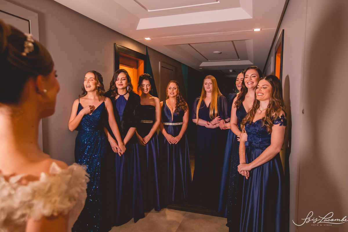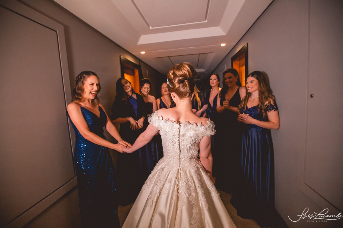 Ela quis fazer um FIRST LOOK com as madrinhas no corredor do Hotel Mercure Convention e eu AMEEEEEEEI, genteeeeem que emocionanteee sério!